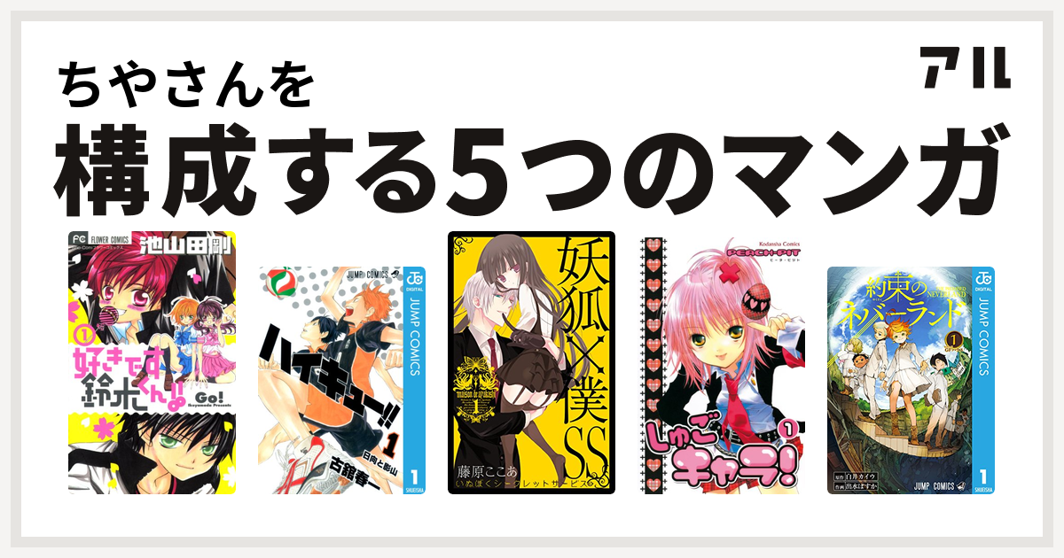 ちやさんを構成するマンガは好きです鈴木くん ハイキュー 妖狐 僕ss しゅごキャラ 約束のネバーランド 私を構成する5つのマンガ アル